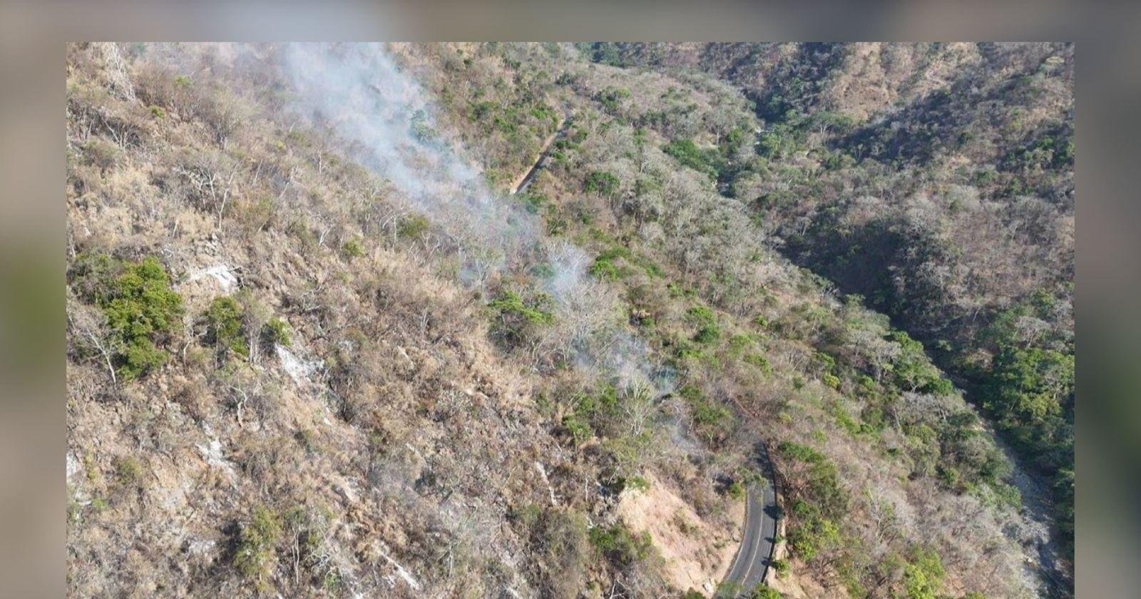 La carretera que conecta los municipios de Villa de Álvarez y Minatitlán fue cerrada de manera temporal debido al riesgo que representa la caída de material provocada por un incendio forestal activo en la zona conocida como El Aparejito.