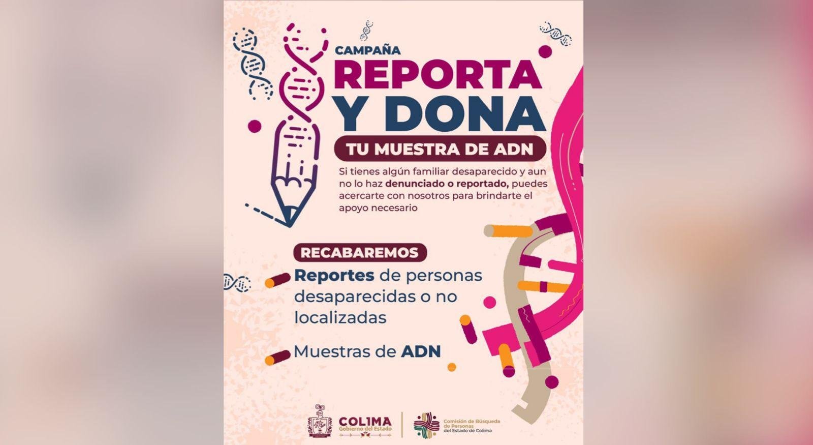 La Comisión de Búsqueda de Personas del Estado de Colima convoca a familiares de personas desaparecidas a donar su muestra genética del 19 al 27 de mayo. Esta acción es clave para avanzar en la identificación de restos encontrados durante las labores de búsqueda.