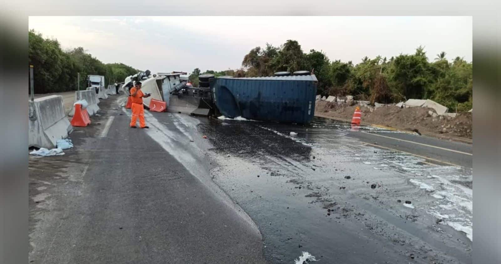 Todo comenzó con la volcadura de un tráiler en las primeras horas del día, a la altura del puente El Caracol, en el ingreso a Cuyutlán. El vehículo pesado terminó cruzado sobre los dos sentidos de la autopista, lo que provocó la interrupción total del tránsito y dejó varados a decenas de conductores.