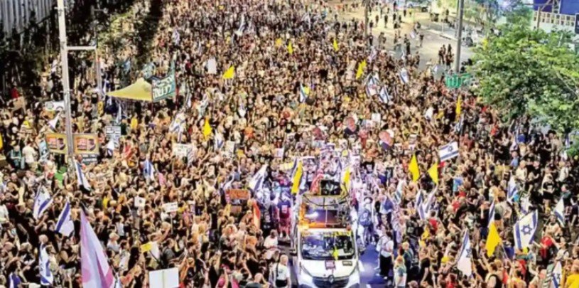 Medios locales como el Canal 12 reportaron alrededor de 60 mil manifestantes en la Plaza de los Rehenes, mientras que el Foro de Familias de Rehenes estimó 100 mil participantes.