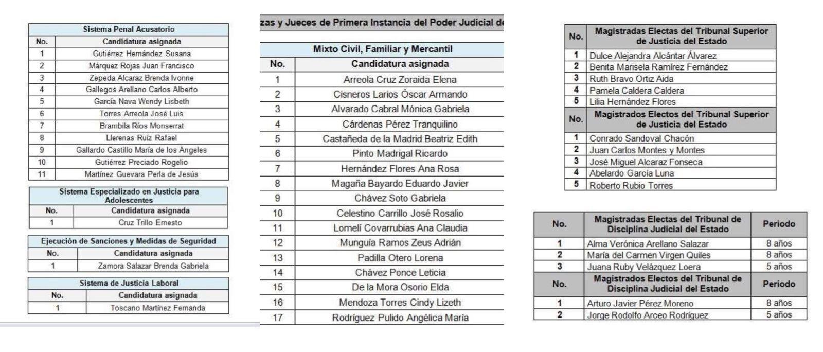 El Instituto Electoral del Estado (IEE) designó a 46 personas para ocupar plazas en el Tribunal Superior de Justicia, el Tribunal de Disciplina Judicial y las judicaturas de Primera Instancia, tras concluir el cómputo estatal de las elecciones para el…
