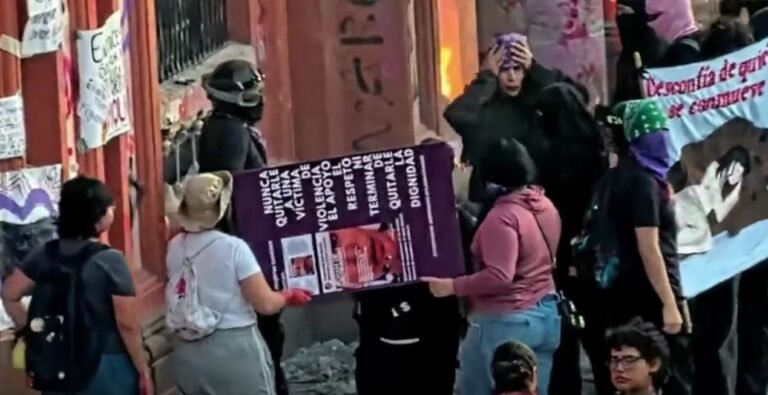 Marcha del 8M en Colima reúne a miles; policías participan y hay daños en Palacio